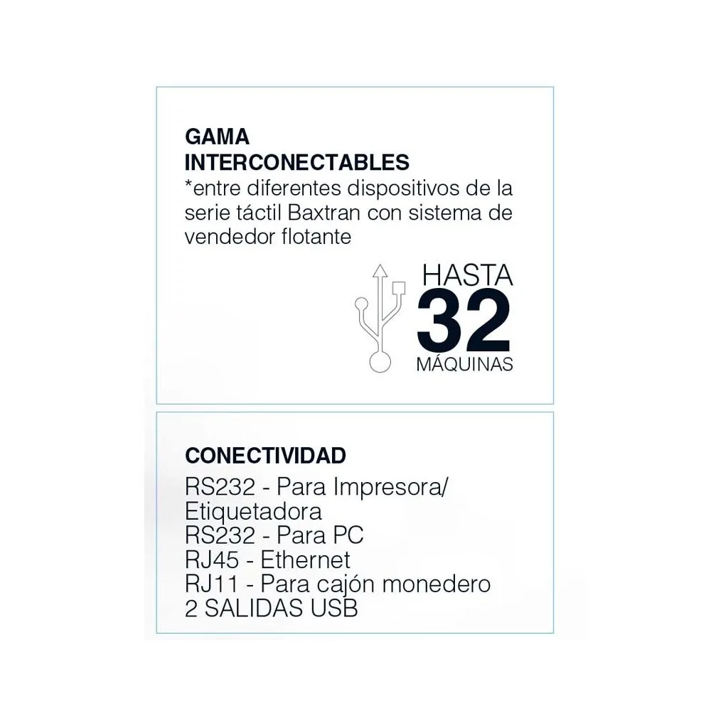 • Sistema de vendedor flotante con multiconexión entre diferentes dispositivos S70 y M80 hasta un número de 32 unidades.