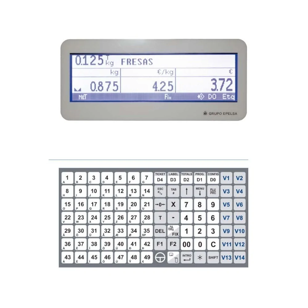 Botonera 98 teclas tipo Omron, de las cuales 49 PLU’s directos y 49 teclas de función. Posibilidad programación de10 tablas directas para acceso rápido de PLU’s. 10 vendedores activos, tecla de standby para ahorro de energía, permaneciendo activo el servidor de comunicaciones.