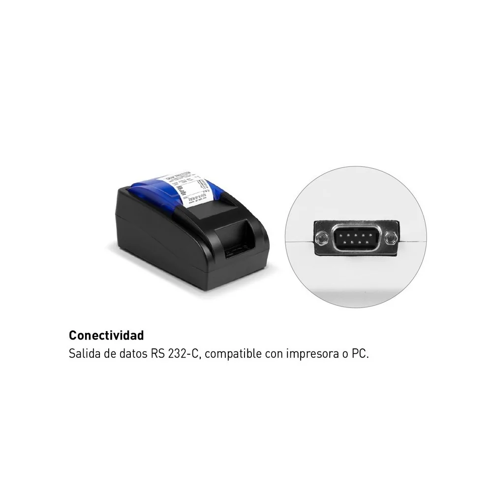 • Conexión RS232 a impresora o PC.