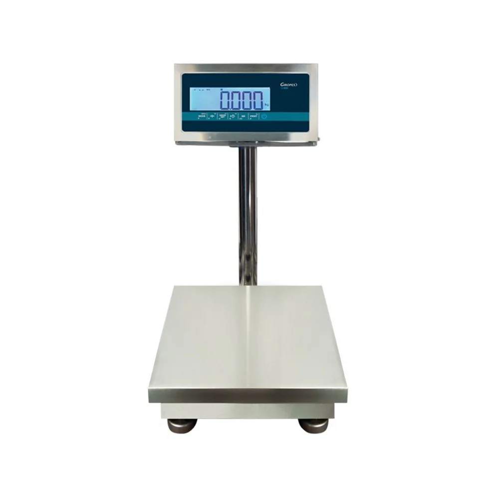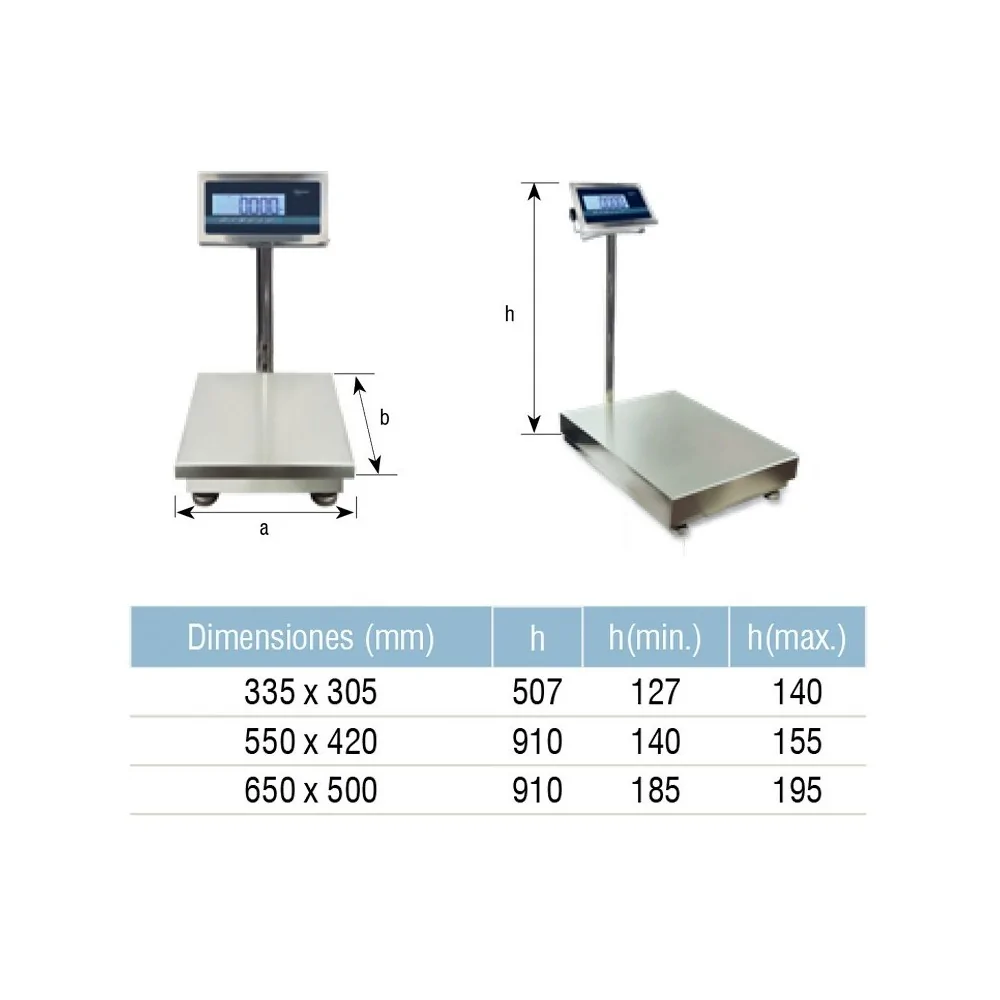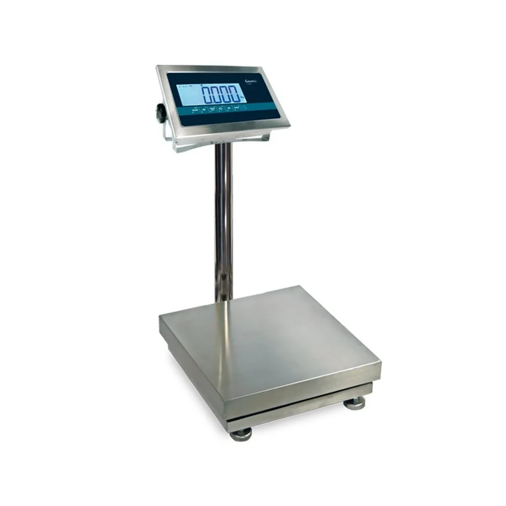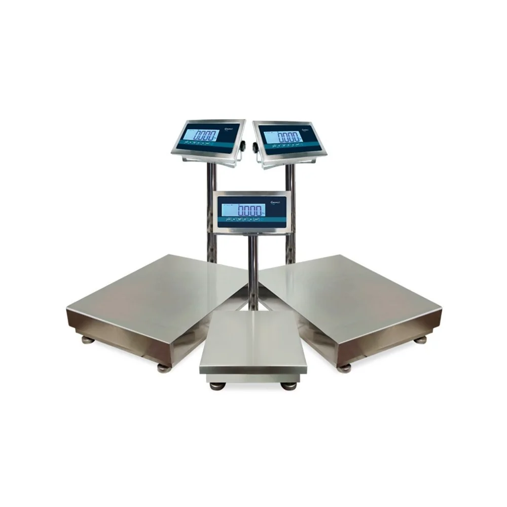 Es una báscula de plataforma completamente inoxidable, comenzando con el visor, columna, estructura, plataforma e incluso las patas.