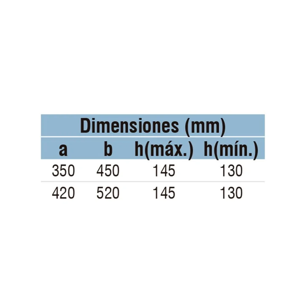 - Versión (P): 350x450 mm. Estructura tubular en acero,