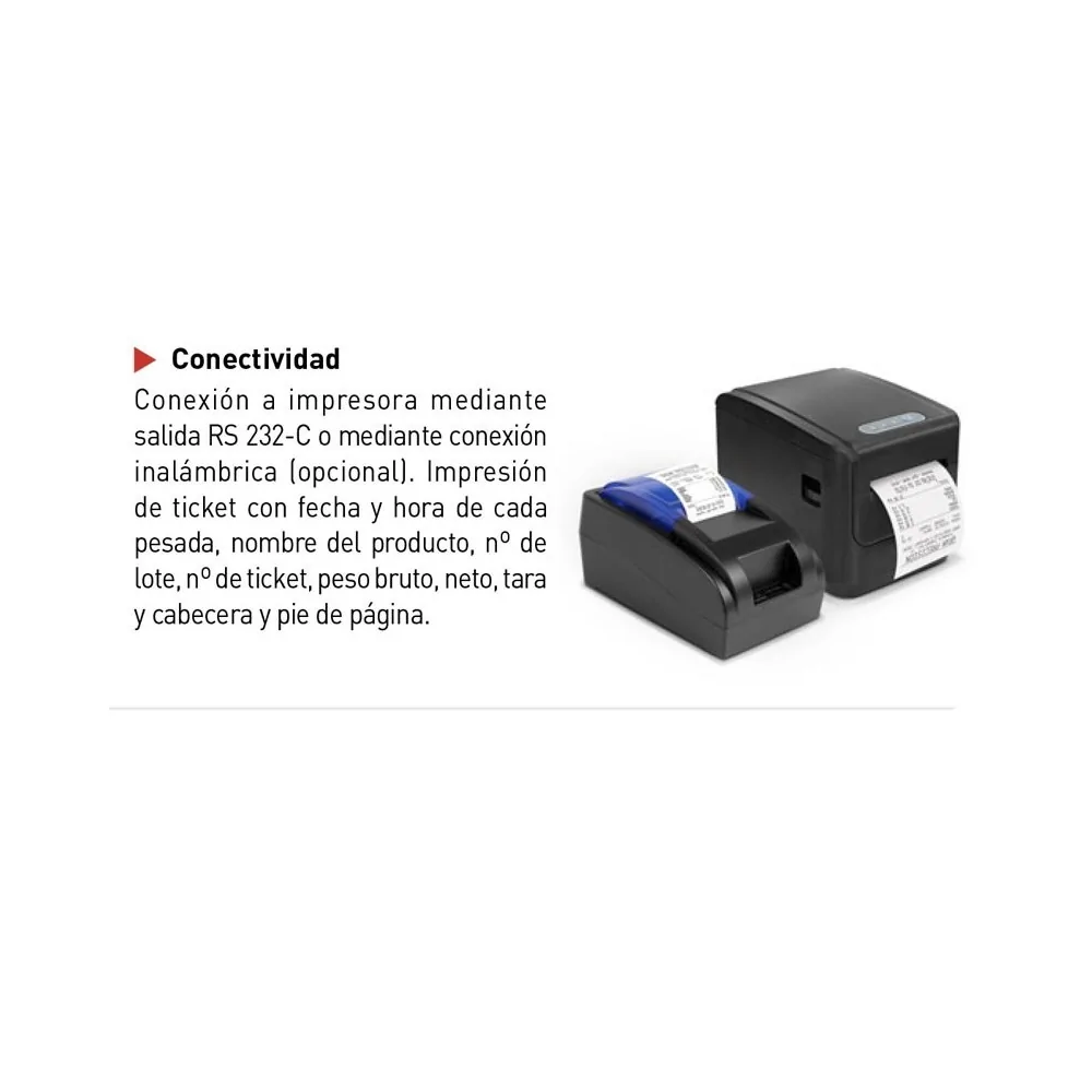 • Conectividad RS 232-C, salida 3 relés (opc.), wifi (opc.