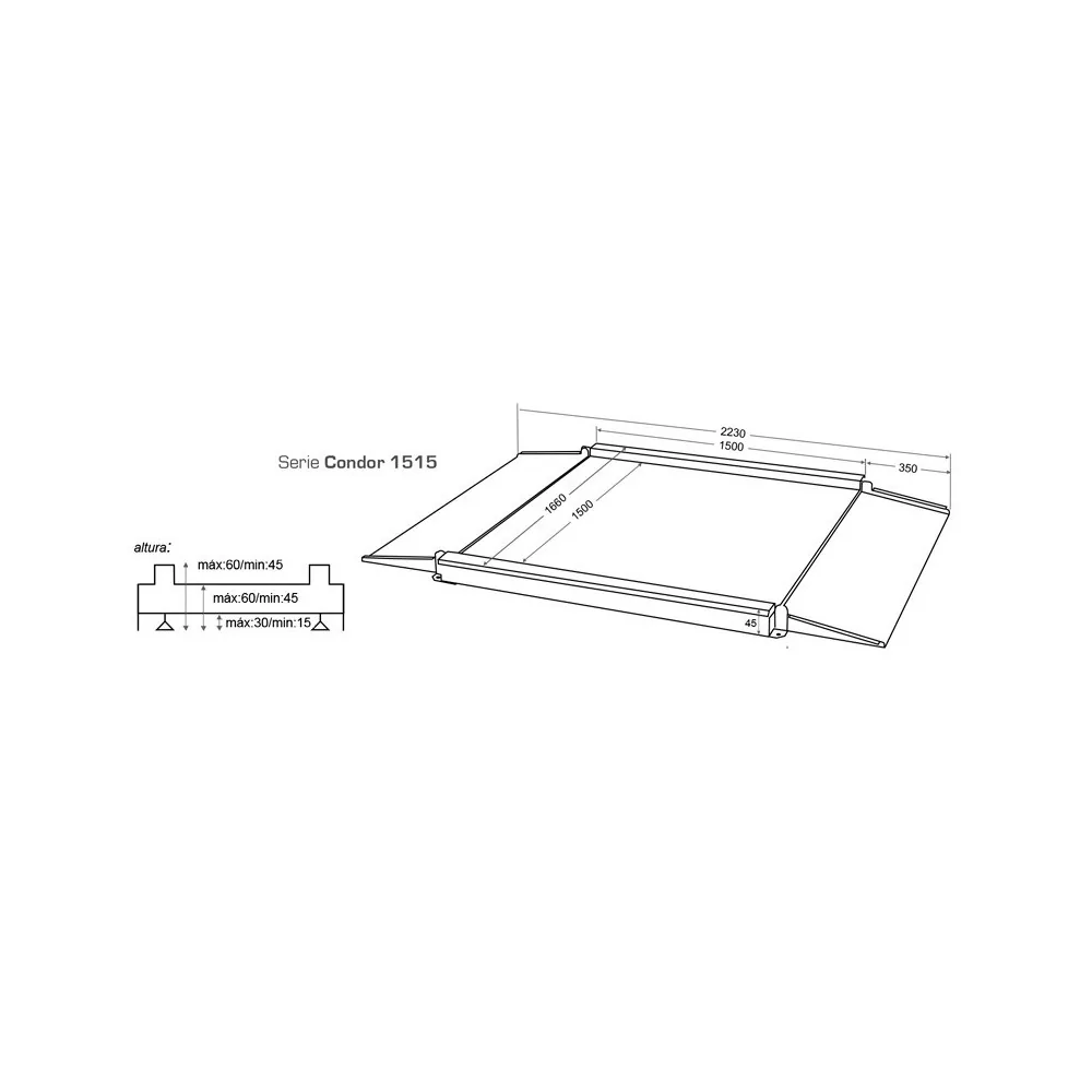 Las plataformas Condor, están muy equipadas. Incluye dos rampas de acceso plegables, lo que le permitirá un uso intensivo para trabajos de pesaje, de cargas sobre ruedas, como transpalets, carretillas.