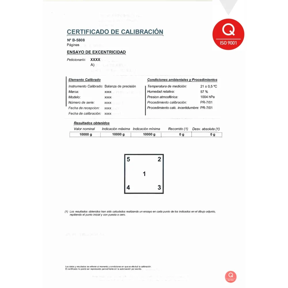 Certificado de calibración ISOCAL de 601 kg a 1500 kg