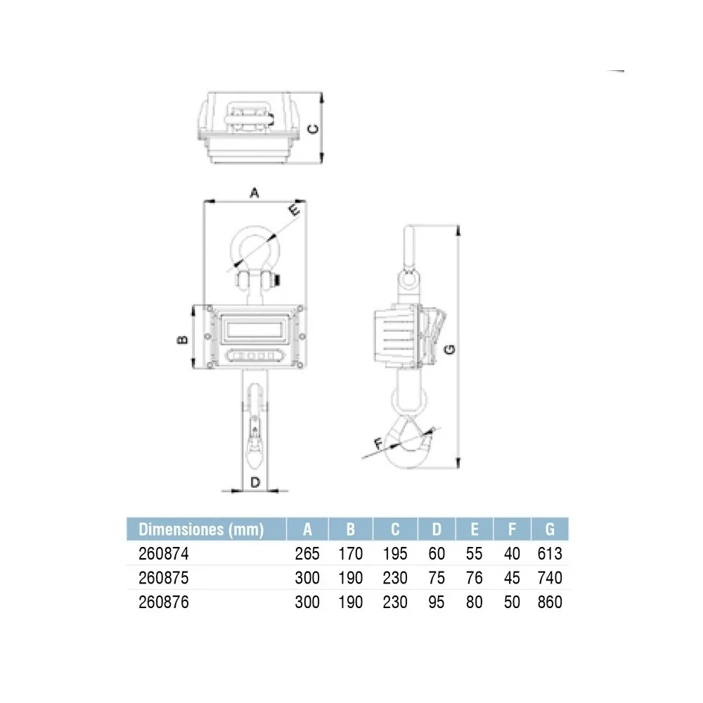 • Gancho pesador con carcasa de aluminio.