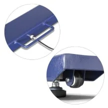 Cuenta con ruedas de larga duración, con exterior en poliuretano y interior de fundición en acero.