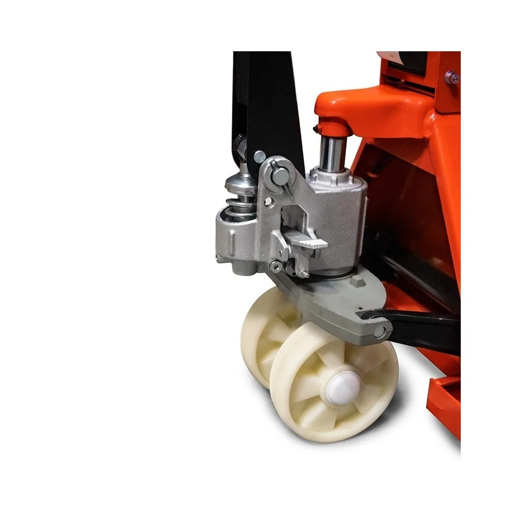 Es una transpaleta de pesaje, robusta, precisa y fiable, para un uso intensivo en almacenes, centros logísticos, gracias a sus ruedas de nylon.
