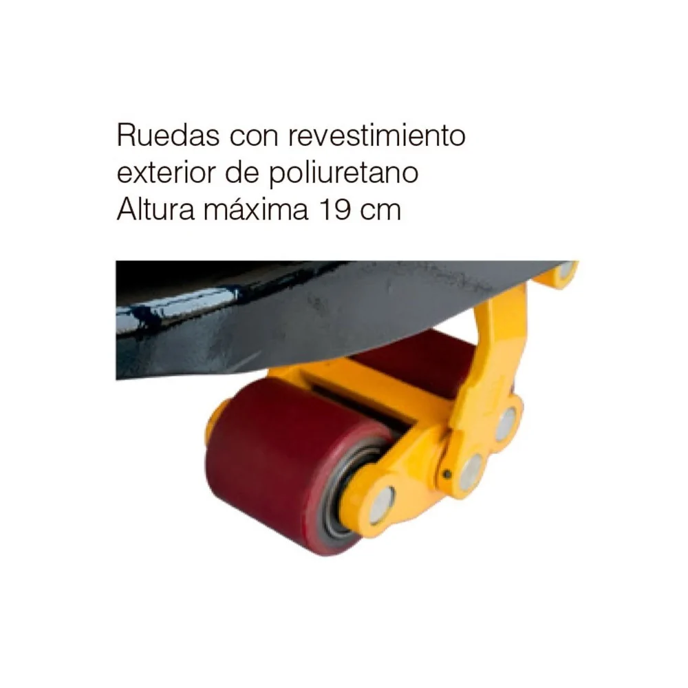 Ruedas con revestimiento exterior de poliuretano y una altura máxima de 19 cm.